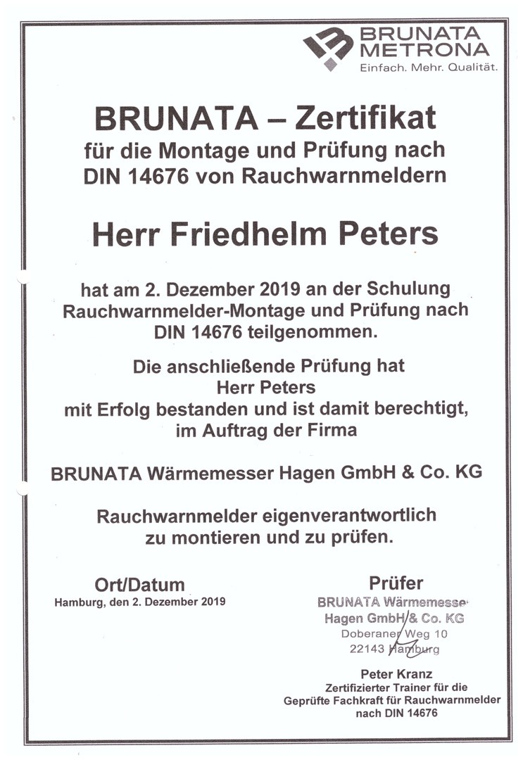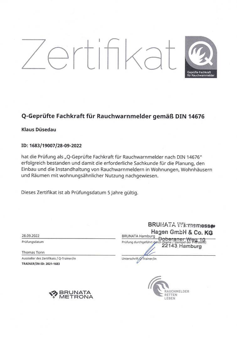 zertifiziert für die Montage und Prüfung von